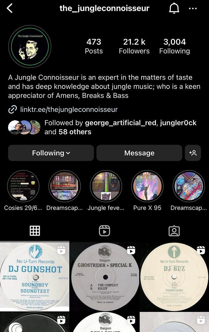 Jon: Maybe I do without realising: see if I post a rare tune, people will then go and Discogs t straight away. Because I get a lot of people commenting that they just discogs’d it and found out it was hundreds of quid. I guess you have to be serious to spend that much on a tune. I’m putting what I know about Jungle out there for people to use as a resource that I didn’t have back in the day. There’s no set routine. What I post it can be quite random to be honest.