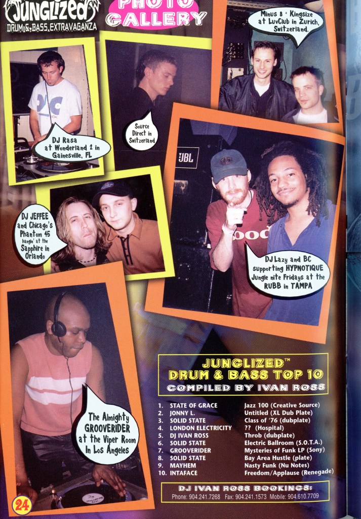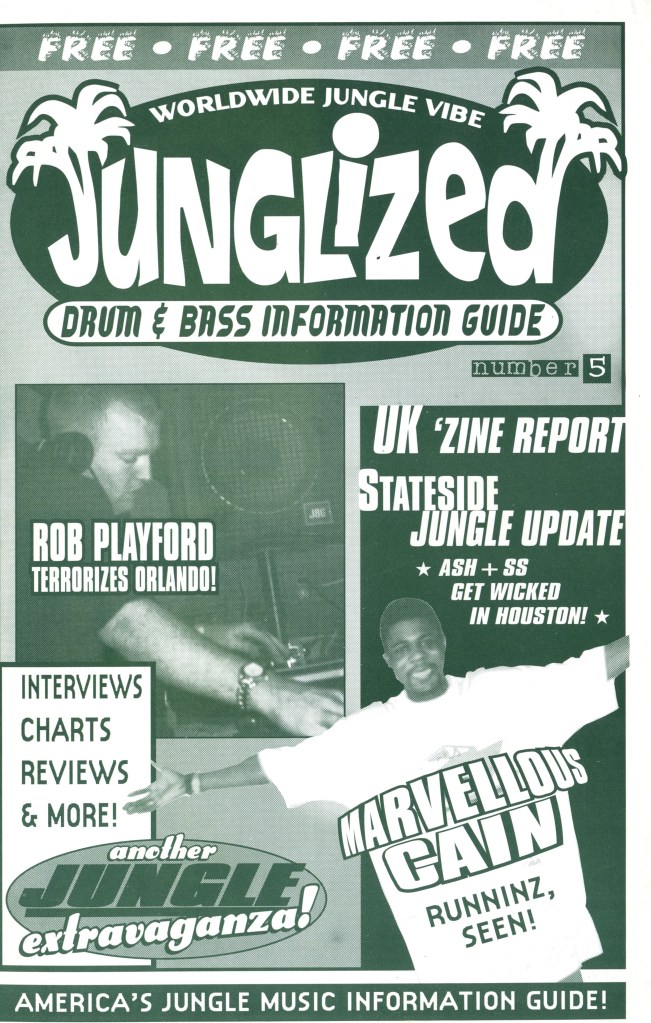 But also, when I was up in Pittsburgh and Cleveland, you had to order a pizza to find out the location of a rave. When I got down here, raves were advertised on the radio. It was all commercial down here already. It was definitely a fight to get a gig, and that’s sort of why I started Junglized. The first issue of Junglized is basically all about Florida. It was tough, but that magazine helped me… people started recognizing me, and AK even wrote a couple record reviews.